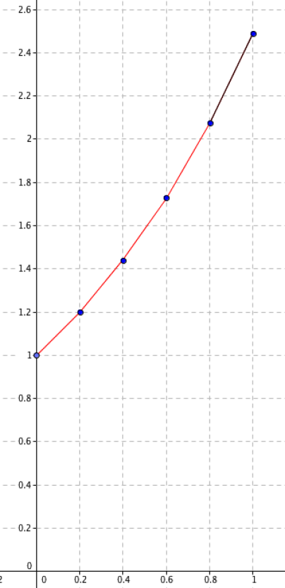 Reproduire la construction précédente avec un pas de 0,2 pour en déduire une valeur approchée de \(f(1)\).