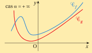 Soit \(f\) et \(g\) deux fonctions définies sur un intervalle \(I\) voisinage de α, α étant un réel, \(+\infty\) ou \(-\infty\)