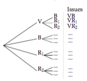 Issues favorables | \(R_{1}R_{2},R_{2}R_{1}\) | \(BR_{1},BR_{2},R_{1}B,R_{2}B\) | \(VR_{1},VR_{2},R_{1}V,R_{2}V\) | \(VB,BV\) |