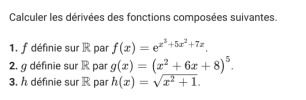 On retrouve par exemple la dérivée de l'exponentielle d'une fonction.